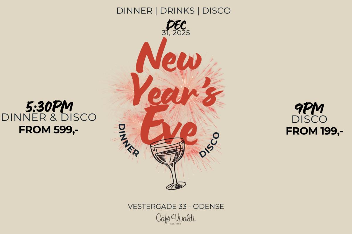 Fra kl. 21:00 åbner vi dørene til årets største nytårsparty på Café Vivaldi Axeltorv – og du er inviteret!