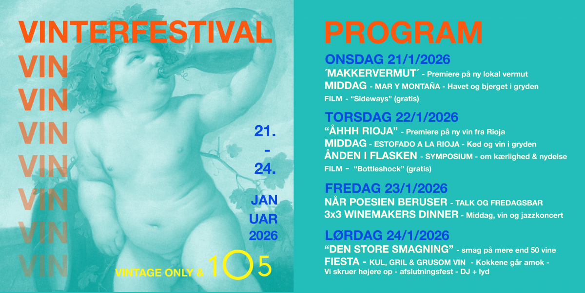 Vinterfestival 2026 er en opfordring til at omfavne beruselsen gennem vin, mad, musik, film og de store tanker.